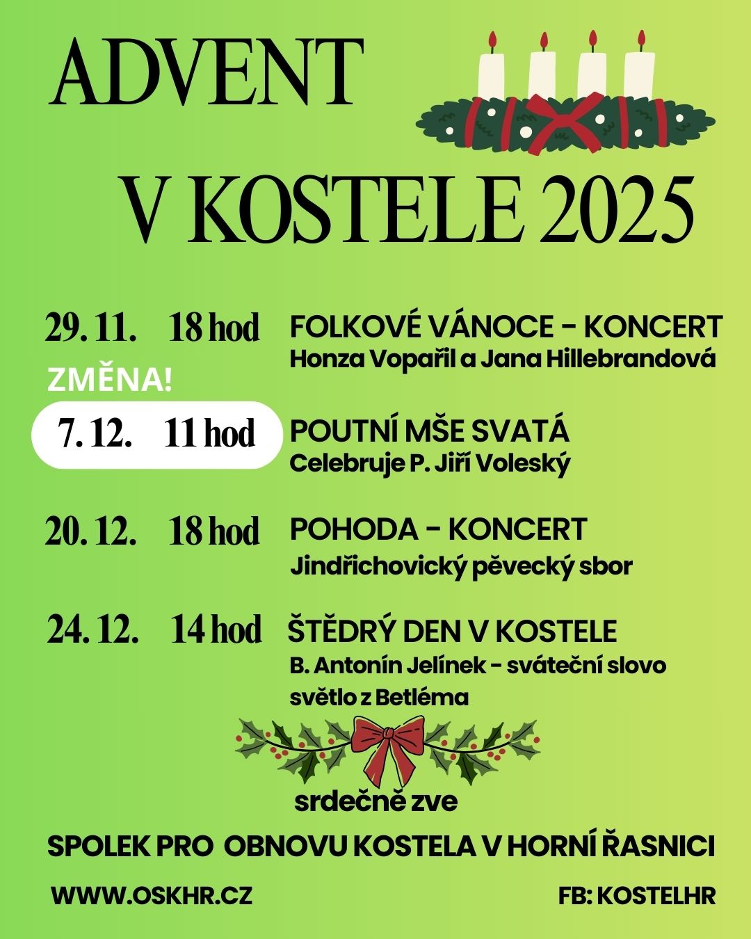 Všem zájemcům, kolemjdoucím a poutníkům nabízíme bohatý program v Horní Řasnici.